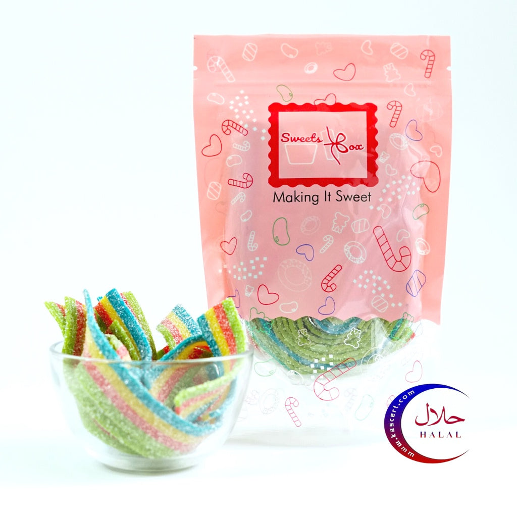 Bebeto Tuti Fruiti Sour Blast Belt is a colorful, chewy candy strip bursting with bold tutti frutti flavor and coated in a tangy sour sugar for an irresistible zing. Made with real fruit juice and free from gelatin, these vegan-friendly belts are soft, stretchy, and packed with fruity goodness. Perfect for candy buffets, party favors, or a fun snack anytime, they come in resealable packaging to keep them fresh and flavorful. Certified Halal and imported from Turkey, Bebeto belts are a sweet-and-sour treat that candy lovers of all ages will enjoy.