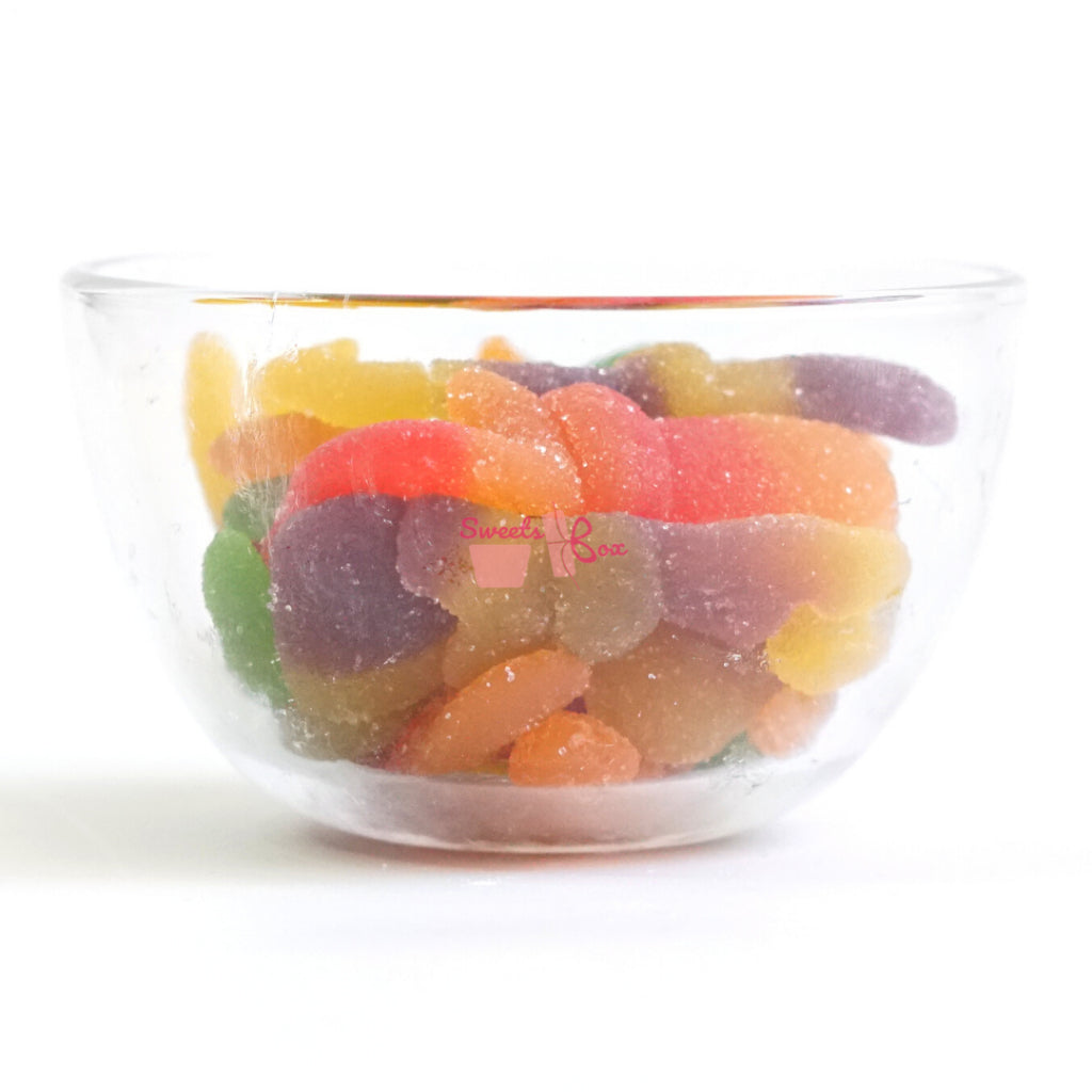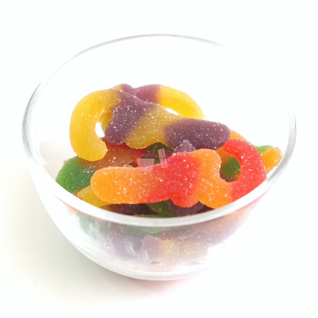 Fun, fruity, and just the right amount of sour! Bebeto Sour Dummies are colorful ring-shaped gummies coated in a light sour sugar that tickles your taste buds with every bite. Each piece bursts with bright fruit flavors — sweet and tangy — making them a favorite for both kids and grown-up gummy lovers.
